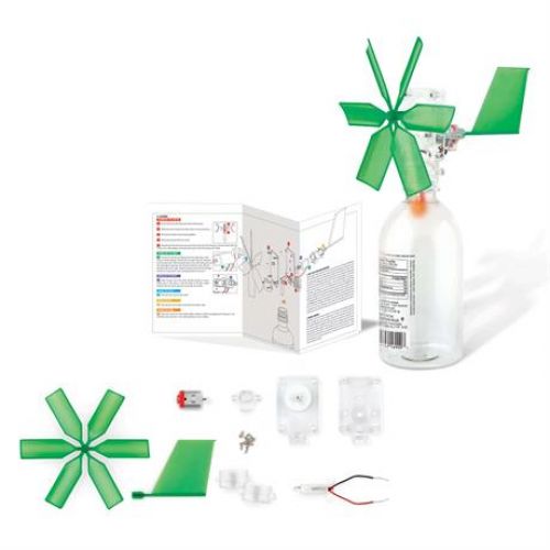 За рахунок вітряної енергії загоряється світлодіод. Дитина може експериментувати з рівнем води в пляшці, напрямом вітру, поривами вітру.