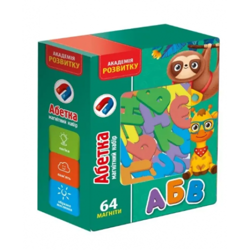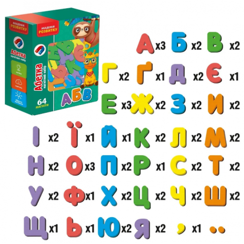 Навчайте дитину абетці за допомогою яскравих м’яких магнітів! Легкі у використанні, безпечні та об'ємні, вони ідеально підходять для маленьких ручок. Разом складайте слова, тренуйте мовлення, читання, логіку та дрібну моторику. Магніти можна розміщувати на холодильнику чи будь-якій магнітній поверхні.