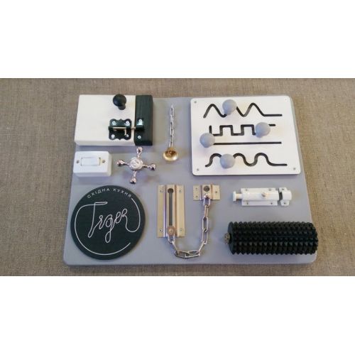 Бізіборд – розвиваюча дошка для дитини, яка складається з різноманітних предметів, які можуть зацікавити дитину вдома. Дана дошка поможе Вашій дитині у розвитку мислення, логіки, винахідливості, дрібної моторики за системою Монтессорі.