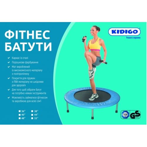 Фітнес батут - це прекрасна можливість тримати себе в формі. Фітнес батут використовують для занять спортом, гімнастики. Багато фітнес клубів використовують даний вид батута для виконання групових фітнес занять. Це корисно, немає навантаження на хребет в порівнянні з бігом або стрибками на скакалці. Також це чудова розвага для ваших дітей. Фітнес батут KIDIGO - це батут для всієї родини.