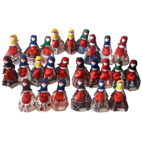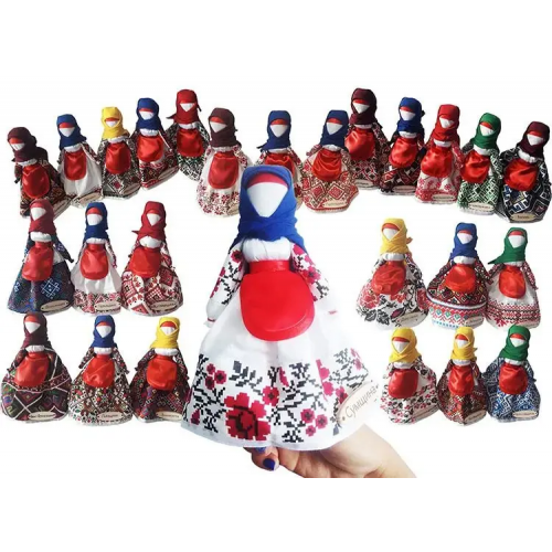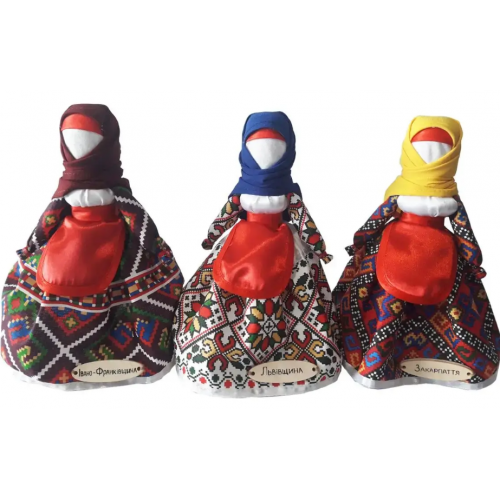 Хустка у кожної ляльки сімволізує основний колір герба кожної області. Орнамент на спідниці і рукавах - відповідає історії, символіці і колористиці українських вишиванок.