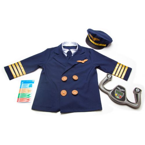 В гральний набір входить піджак пілота з прикріпленою сорочкою і самоклеючою краваткою, кашкет, штурвал, маршрутна карта. Куртка зроблена з 100% поліестеру. Цей набір - чудова ідея для подарунка маленькому герою! Такий костюм можна одягнути на костюмований бал або на святкування Нового року. Його можна прати в пральній машині.