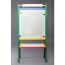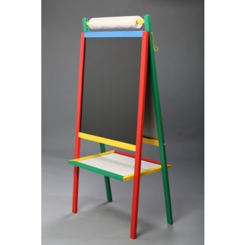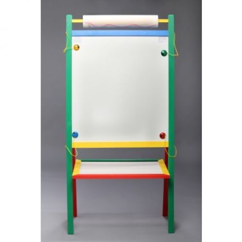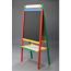 У мольберта дві окремі поверхні: темна для малювання крейдою й біла магнітна для роботи з буквами або малювання маркерами, що змиваються водою.