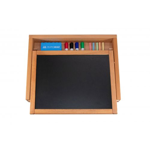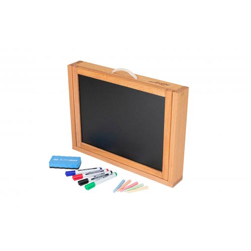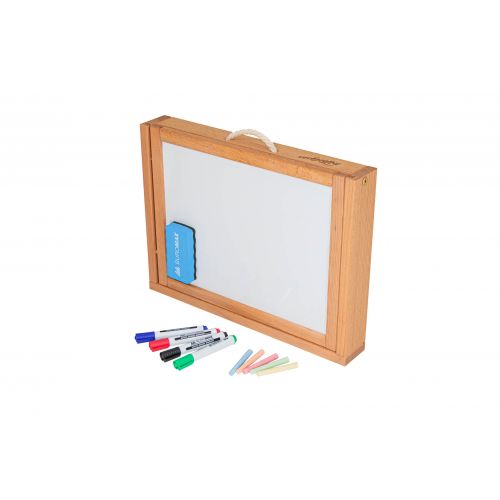 Двосторонній мольберт для малювання кольоровою крейдою і маркерами на водній основі.