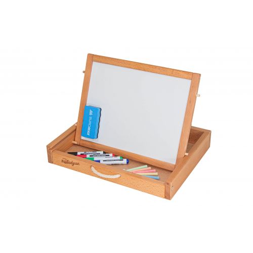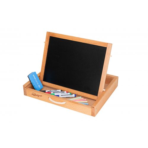 Це компактна валіза що перетворюється в повноцінний мольберт, творчий та навчальний куточок. Її зручно брати з собою в подорожі та легко доглядати.