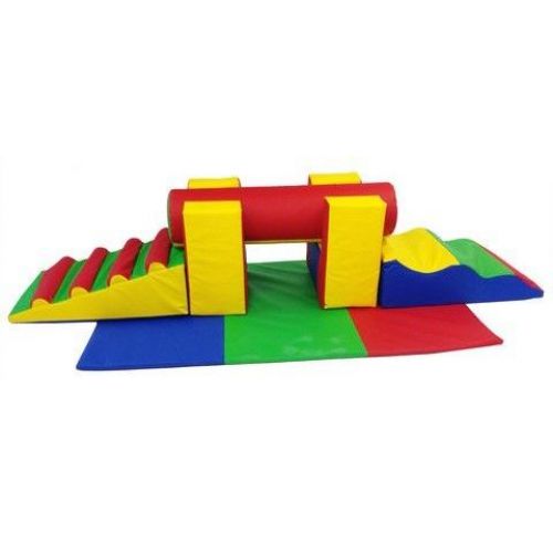 Виріб у вигляді яскравого м'якого набору з 6 окремих модулів: мату, гірок, циліндричної поперечини, підставок під циліндри. Розмір мату 200х120х25 см, гірки 90х60х30 см, поперечини 120х30 см, підставки 60х60х30 см.