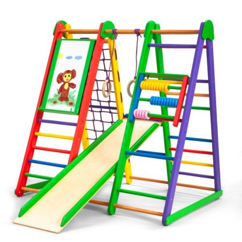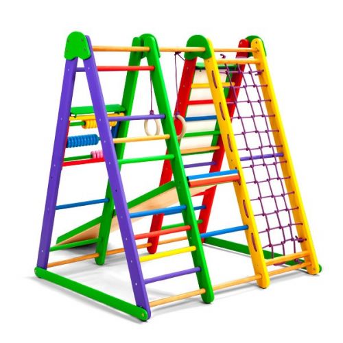Модель складається з: шведської стінки, гладіаторської сітки, рукоходу, дитячої гірки, кольорової рахівниці, маркерно-крейдяного мольберта, кілець. Максимальне навантаження 60 кг.