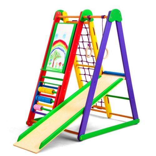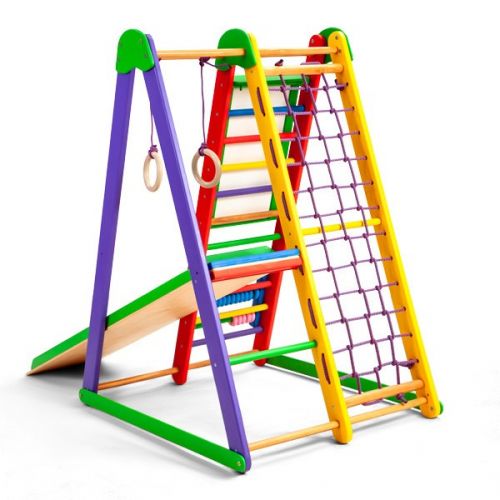 Модель складається з: шведської стінки, гладіаторської сітки, рукоходу, дитячої гірки, кольорової рахівниці, маркерно-крейдяного мольберта, кілець. Максимальне навантаження 60 кг.