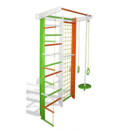 У комплекті: шведська стінка, турнік, мотузкові сходи, кільця, канат, диск, кріплення.
