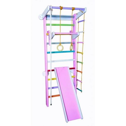 У комплекті: шведська стінка, турнік, мотузковий набір, дитячий турнік, гірка і кріплення.