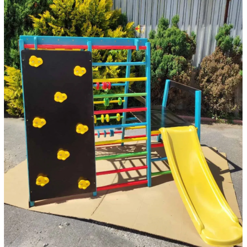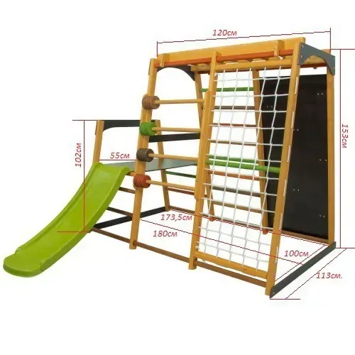Комплекс виготовлений із якісних металевих матеріалів, покритих порошковою фарбою, стійкою до атмосферних впливів. Надійна конструкція гарантує довготривале використання та витримує навантаження: