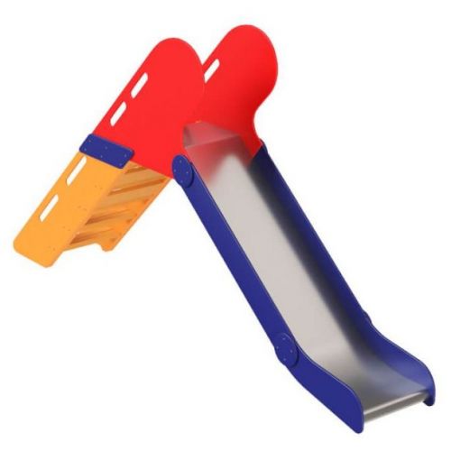 Класичний елемент дитячого ігрового майданчика. Ця гірка оснащена дерев’яними поручнями.