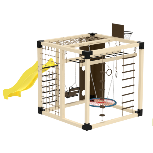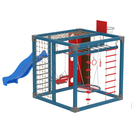 | Комплектація | Рукохід, драбини, різноманітні лазалки, гірка, гойдалка, скеледром, баскетбольне кільце |