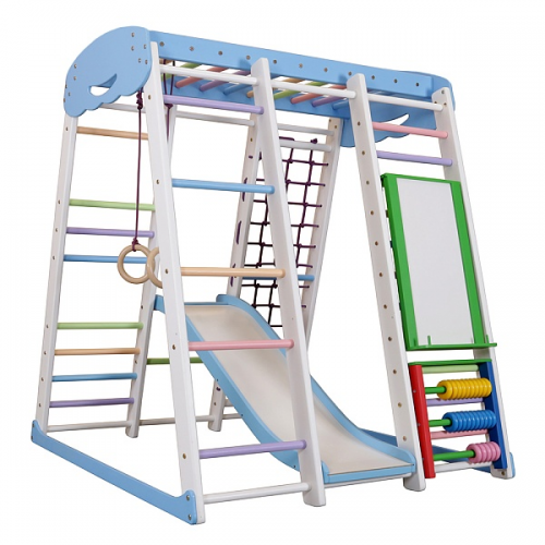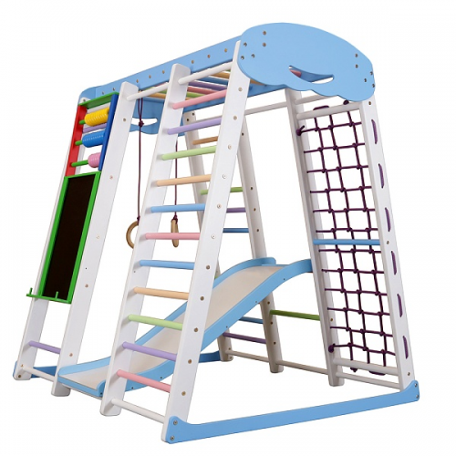 Займаючись на даному спорткомплексі, дитина тренує всі групи м'язів, отримує норму щоденного фізичного навантаження, розвиває творчі здібності, вивчає основи математики та оздоровлюється в цілому. Також даний товар сприяє профілактиці захворювань центральної нервової системи та розвитку вестибулярного апарату.