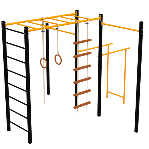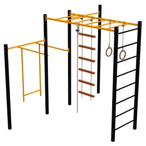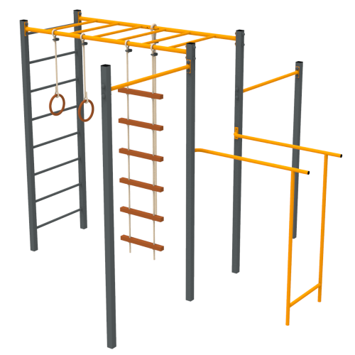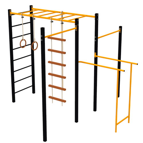 Тренує всі групи м'язів. Також є гойдалка, що дозволяє поєднати фізичні вправи з розвагами. Завдяки дитячому комплексу, ігри і фізичні вправи можна проводити на вулиці.