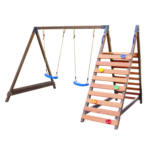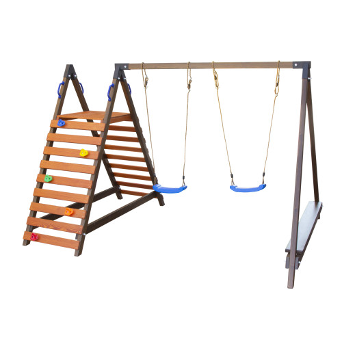 Ігрові комплекси : Дитяча гойдалка вулична зі скелелазкою та лавочкою в тонуванні PRO
