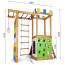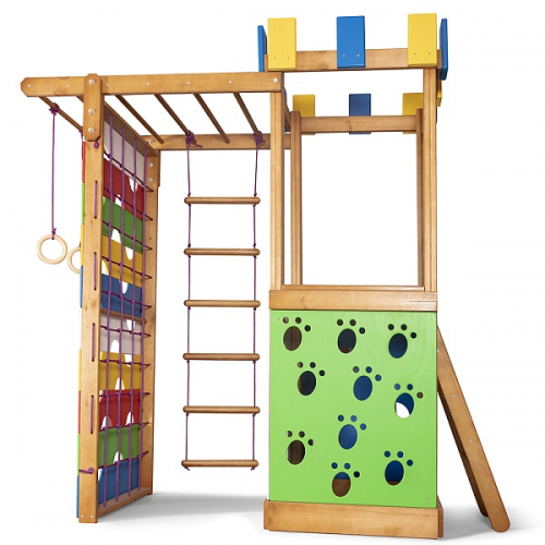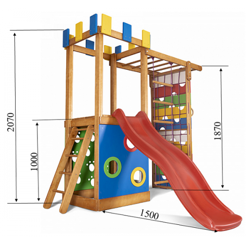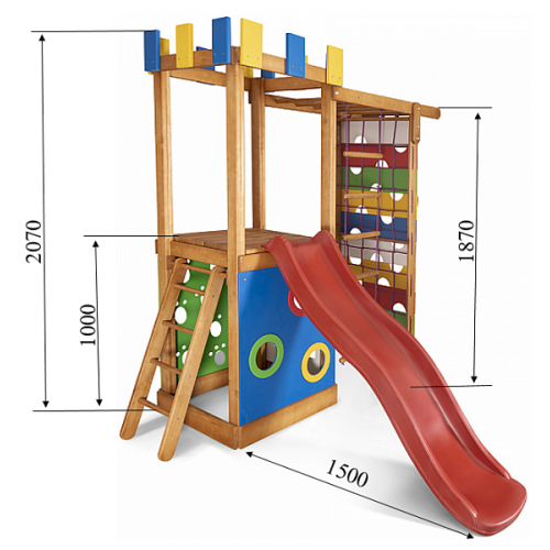 Дитячий ігровий комплекс для дому зроблений з натурального дерева. Покритий антисептиком і тонуванням, для продовження служби комплексу. Двосхилий дах захистить від сонця або дощу, забезпечивши комфортну гру і відпочинок. Гірка має бічні бортики, для додаткової безпеки. Зроблена з пластику високої щільності. Стійка до розтріскування і сонячним променям, несприятливих погодних умов. На майданчику зможе грати компанія дітей. Це допоможе розвинути соціальні навички, терпіння, взаємодопомоги. Підійде для двору або дитячого садка. Завдяки дитячому комплексу, ігри і фізичні вправи можна проводити на вулиці.