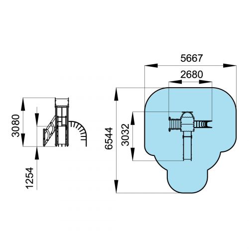 З одного боку до платформи підходить сходи з перилами, з іншого сходи з гнутої труби, з третьої сходи дугові, а з четвертої гірка.