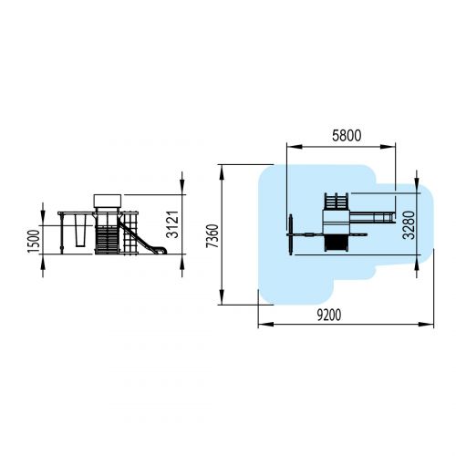 Вільна зона безпеки становить 1,5 м в усі боки від проекції виробу.Необхідна площа для установки комплексу Р801 - 6,0 х 3,5 м, з урахуванням зони безпеки необхідна площа становить 9,2 х 7,4