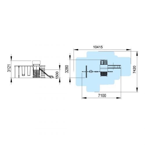 Вільна зона безпеки становить 1,5 м в усі боки від проекції виробу. Необхідна площа для установки комплексу Р801 - 7,2 х 3,5 м, з урахуванням зони безпеки необхідна площа становить 10,5 х 7,4 м.