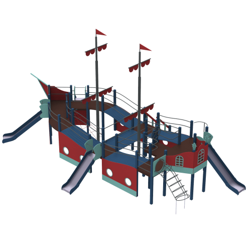 | Комплектація | складається з конструкції у вигляді корабля зі всіма атребутами - штурвалом, ілюмінаторами та каютами. Корабель доповнений 4 металевими гірками та різноманітними лазалками |