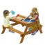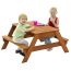 Дитяча пісочниця-стіл зроблена з натурального дерева, екологічно чистого та безпечного для дітей і навколишнього середовища. Стіл складається з двох лавок і столика, що ділиться на дві секції, в які можна помістити як пісок, так і воду. У пісочниці діти можуть грати розвиваючи фантазію і соціальні навички. Гра з піском заспокоює. В ігровій формі можна зайнятися психотерапією на свіжому повітрі. Комплект підійде для організації зони відпочинку та гри в дитячому дошкільному закладі.