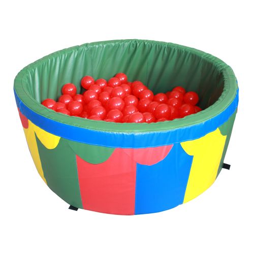 В комплекті 100 шт кольрових кульок та м'яке дно (мат). Знімний чохол, який легко миється і чиститься. Підходить для дитячої гри вдома.
