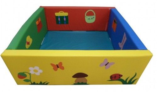 Виріб у формі яскравого різнокольорового сухого басейну прямокутної форми з малюнком. Розмір виробу 150х50х10 см.