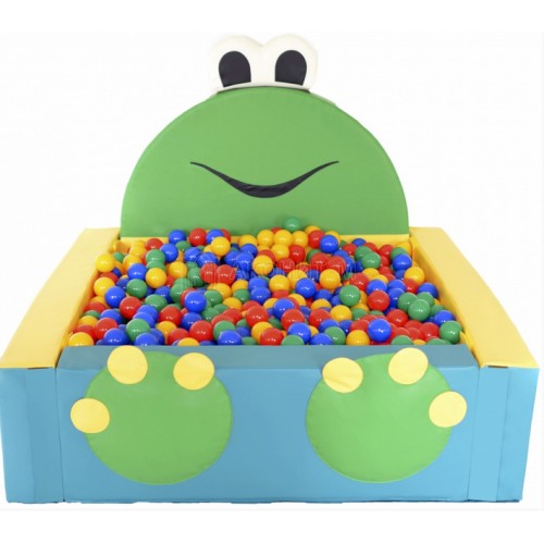 Виріб у вигляді яскравого м'якого сухого кутового басейну в формі жабки. Розмір виробу 140х140х40х15 см.