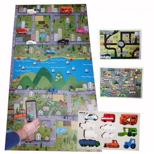 На теплому килимку дитина може відтворювати різні дорожні сюжети, а за допомогою смартфону перевести гру в 3-D реальність. Впродовж гри дитина також вивчає дорожні знатки та правила поведінки на дорозі, що в майбутньому гарантуватиме її безпеку.