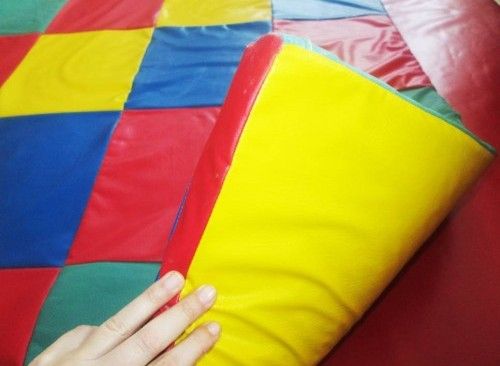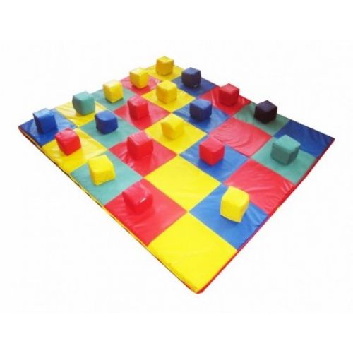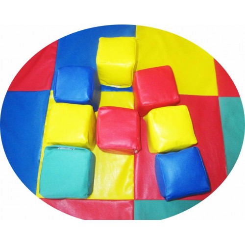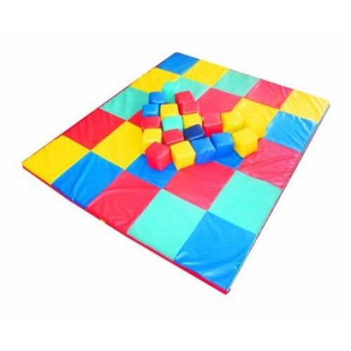 Модель різнокольорова і яскрава. Мат і кубики мають знімний чохол, який легко миється і чиститься. Люверс для циркуляції повітря. Зручна ручка для перенесення.