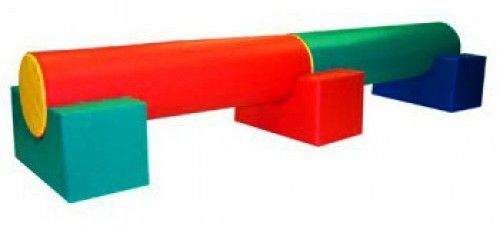 Виріб у вигляді яскравого різнобарвного м'якого тренажера з 5 окремих елементів: циліндрів, прямокутних опор. Розмір циліндра 120х30 см, опори 60х30х30 см.