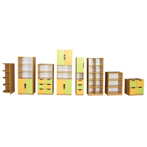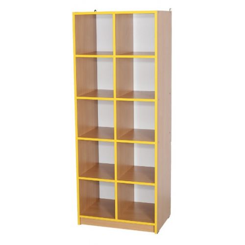 Виріб представлений стелажем відкритим з 10 комірками з ДСП 16 мм. Колір корпусу бук. Колір фасаду жовтий.