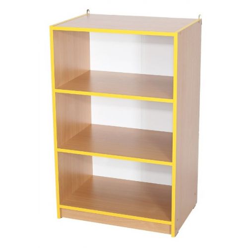 Виріб представлений стелажем відкритим, з 2-ма полицями і 3 нішами з ДСП 16 мм. Колір корпусу бук. Колір фасаду жовтий.