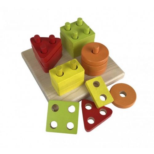 Виріб у вигляді яскравого набору з платформи і різнокольорових деталей різної геометричної форми. Фігурки потрібно нанизувати на стержні платформи. Гра розвиває дрібну моторику, уяву, логіку.