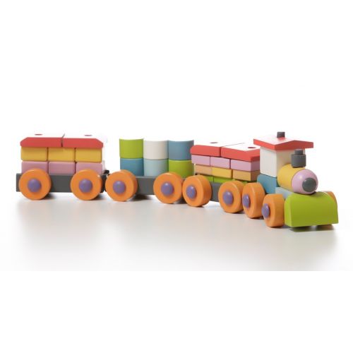 Цей дерев'яний конструктор являє собою набір з дерев'яних елементів, розфарбованих різними кольорами. М'яка колірна гамма деталей, приємна на дотик поверхня, все це відчується після покупки дерев'яного конструктора потяг Cubika.