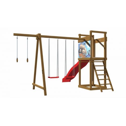 Майданчик виготовлений з натурального дерева сосни - екологічного, практичного та довговічного матеріалу, покритого водоемульсійною фарбою. Прослужить довгий час і забезпечить максимальний комфорт в процесі експлуатації.