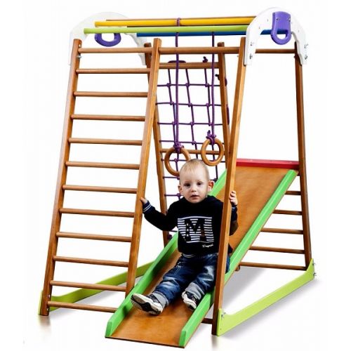 Дитячий спортивний комплекс для дому BabyWood - стане прекрасним подарунком для Вашого малюка і його улюбленим місцем для ігор. Завдяки спортивним елементам і оригінальним атрибутам, граючи на ньому і займаючись спортом, діти отримуватимуть масу задоволення, виконуватимуть зміцнюючі та розвиваючі вправи, виробиться відмінна постава, зміцніють м'язи рук, ніг, спини і преса.