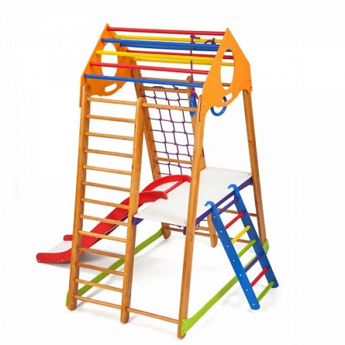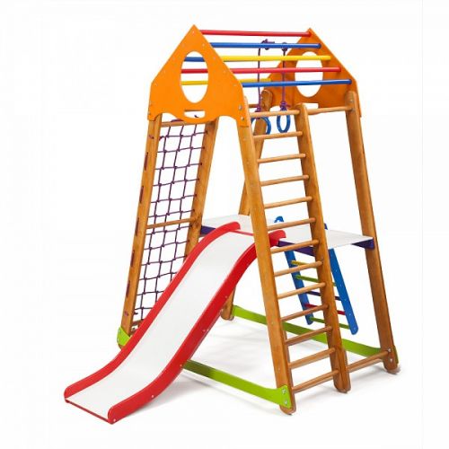 Дитячий спортивний комплекс оснащений усіма ігровими елементами і спортивними атрибутами, необхідними для повноцінного розвитку дитини.