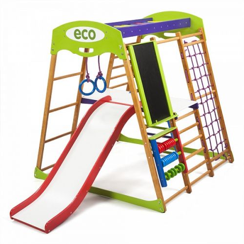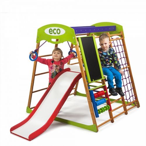 Дитячий спортивний комплекс оснащений усіма ігровими елементами і спортивними атрибутами, необхідними для повноцінного розвитку дитини.