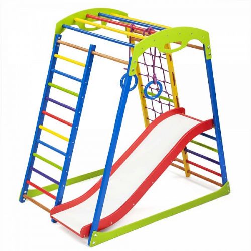 Дитячий спортивний комплекс оснащений усіма ігровими елементами і спортивними атрибутами, необхідними для повноцінного розвитку дитини.