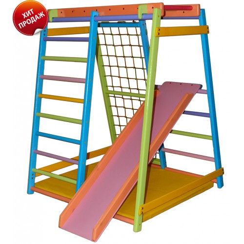 Дитячий ігровий комплекс призначений для малюків від 2 до 6 років. Малюк, який здійснює перші кроки, із задоволенням почне освоювати спортивно - ігровий комплекс. Піднімаючись вгору по драбині, він постійно буде масажувати стопи ніг, що є профілактикою плоскостопості, покращує координацію рухів і синхронізує роботу півкуль головного мозку. Повисівши на перекладині рукоходу, дитина зміцнить м'язи рук, плечового пояса, грудей, спини і черевного преса. Заняття на спортивно - ігровому комплексі до того ж допоможуть обійти проблеми в розвитку хребта вашої дитини. Спортівно - ігровий комплекс допоможе використовувати енергію дітей на всі 100%!