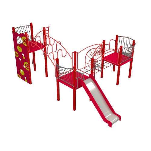 Для виробництва використовуються високоякісні дерев'яні дошки та металеві елементи. Щоб отримати стійкий насичений колір, компанія-виробник покриває дерево кількома шарами якісної німецької фарби, а метал - елітною глянцевою фарбою іспанського виробництва. Завдяки такому підходу, гойдалка встоїть перед будь-якими погодніми умовами. Перед фарбуванням всі частини грунтуються.