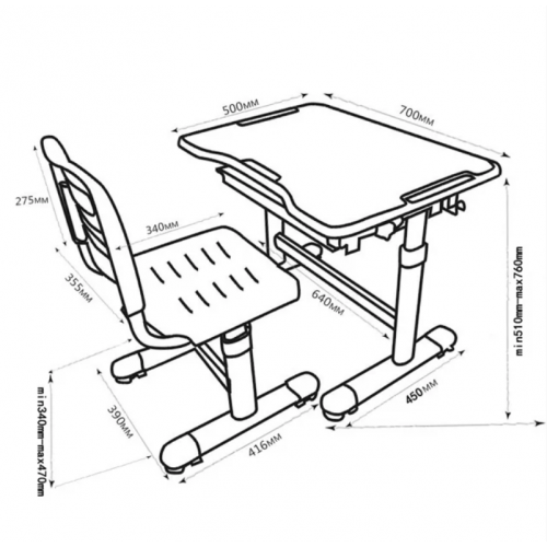 Розмір столу (ШхГхВ): 700x500x510-760 мм