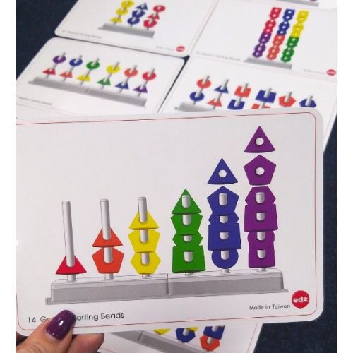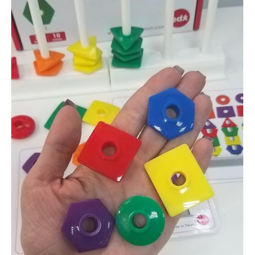 Виріб у вигляді яскравого набору з 36 намистин різної геометричної форми і кольору, 2 підставок, 6 стрижнів, 10 двосторонніх карток із завданнями. Гра розвиває дрібну моторику, логіку, уяву, пам'ять, мислення.