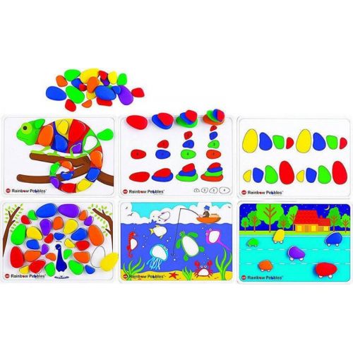 Виріб у вигляді яскравого набору з 12 двосторонніх карток з різними завданнями і 48 камінців різного кольору і розміру. Різнокольорові камінці гладкі, плоскі, приємні на дотик. Можна створювати безліч фігур. Набір розвиває дрібну моторику, уяву, пам'ять, фантазію, сенсорику.