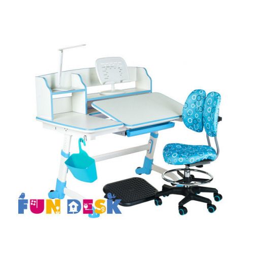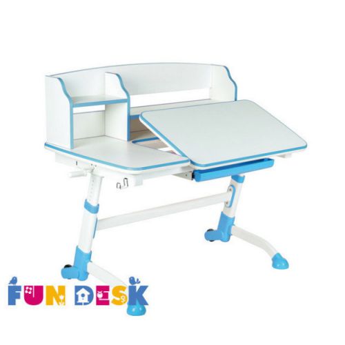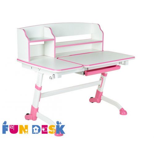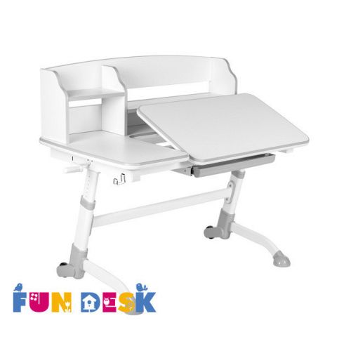 Стіл-трансформер Amare II - ергономічний, регульований по висоті, з сучасним дизайном і навісною полицею стіл для вашої дитини. Наявність полиць над стільницею збільшує робочий простір, створюючи додаткове місце для зберігання книг і канцелярського приладдя. Нахиляюча до 25 ° робоча поверхня дає можливість вибрати максимально зручний кут нахилу для письма, читання і малювання. Покриття антивідблиску стільниці захищає очі вашої дитини від втоми. Завдяки багатоступінчатому механізму регулювання висоти парта «зростає» разом з вашою дитиною. Наявність коліщаток дозволяє легко переміщати парту, не пошкоджуючи підлогу.