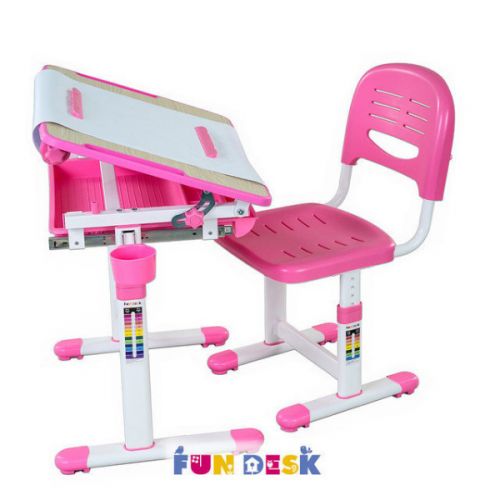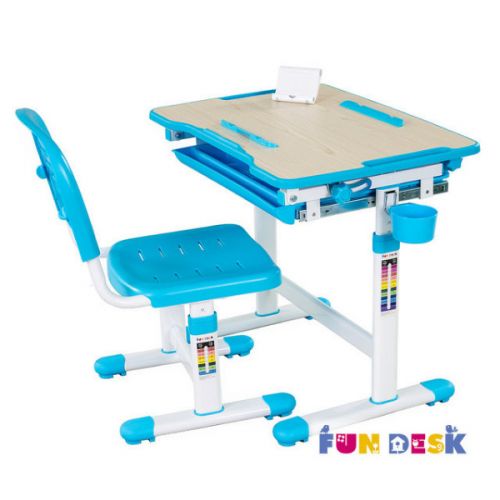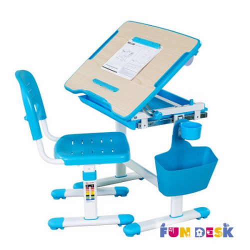 Дуже важливо, щоб дитина правильно сиділа за столом при виконанні домашнього завдання. Дитяча парта Bambino призначена для забезпечення більш комфортного середовища навчання. Стіл і стілець можуть бути легко відрегульовані по висоті, що дозволяє оптимально адаптувати його під відповідне зростання дитини. Поверхню навчального столу можна нахиляти до 40 ° для зручного письма, читання і малювання. Відсіки шухляди в нижній частині столу надають достатню кількість простору для книг і канцелярського приладдя.