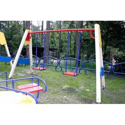 Гойдалки подвійні на дерев'яних стійках чудово підійдуть для встановлення на дитячих майданчиках багатоповерхових будинків, навчальних закладів та різних розважальних центрів. Сучасний дизайн, екологічно чисті матеріали, які застосовуються при виготовленні гойдалок, зроблять гру Ваших дітей не тільки цікавою, але і безпечною.
