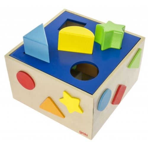 Дерев’яний сортер з геометричними фігурами німецького виробника іграшок goki зроблений з екологічно чистих матеріалів, тому є абсолютно безпечним для дитини. До набору входять 10 геометричних форм (5 видів) та дерев’яна коробка з отворами для геометричних фігур. Дитина має сортувати фігури, знаходячи підходящі отвори. Легкі та яскраві форми відрізняються за розміром та кольором, тому дитина легко осилить сортер.